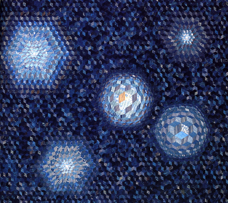 Probably one of the most affective patchwork artists today, Kuroha Shizuko's quilts reach those depths of soul others have yet to fathom. Working with old indigo dyed kimonos, using asymmetric variations of well-know quilt patterns, Kuroha-san achieves a divine marriage of dynamism and harmony. It is almost like flying.