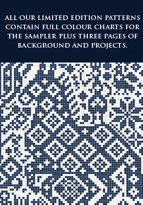 These are the fantastical and distinctive patterns worked by the Amager dames you see in the book above. Worked in blue or black in cross or flecht stitch. Sometimes white on white, sometimes as knitting - using raised moss on purl to create the pattern.